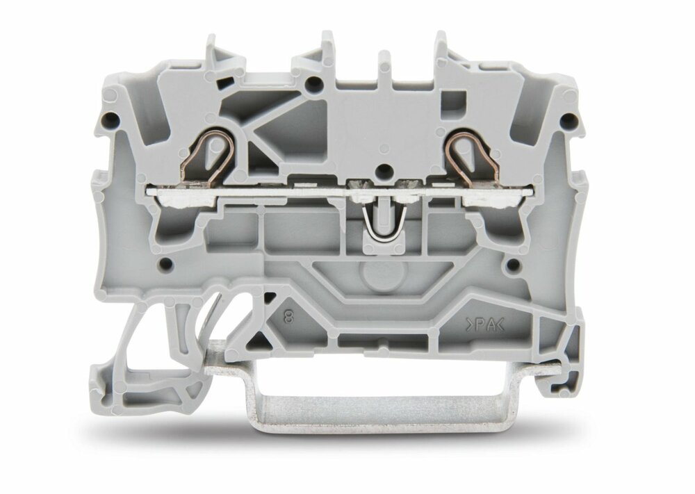 2-проводные проходные клеммы Wago 2001-1201, 1,5; подходят для исполнений Ex e II; боковая и центральная маркировка; для DIN-рейки 35 x 15 и 35 x 7,5; Push-in CAGE CLAMP®; 1,50 mm²; серые.