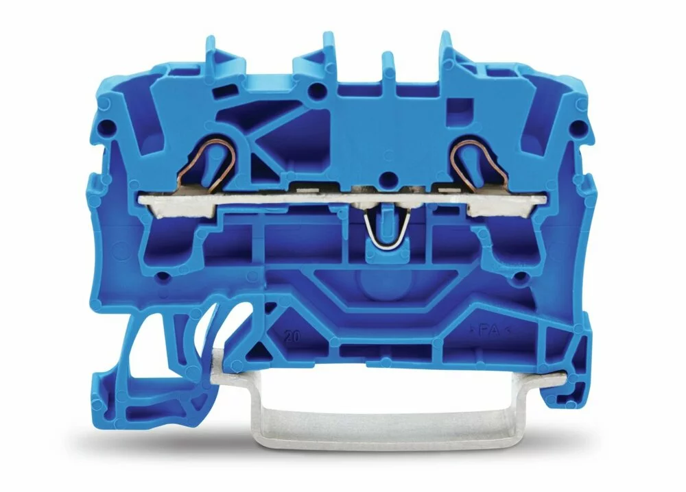 2-проводные проходные клеммы Wago 2002-1204, 2,5 мм²; Для исполнений Ex e II и Ex i; боковая и центральная маркировка; для DIN-рейки 35 x 15 и 35 x 7,5; Push-in CAGE CLAMP®; 2,50 mm²; синие.