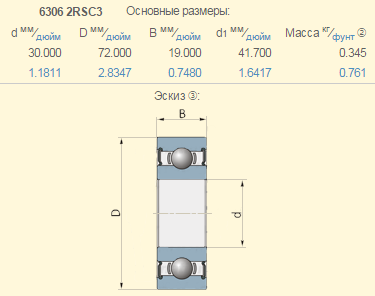 215048.0 подшипник Claas 6306-2RSC3 (C3 - тепловой зазор; 2RS - зашита прорезиненный пластик)