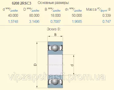216101.0 подшипник Claas 6208-2RSC3 (з тепловим зазором) SKF