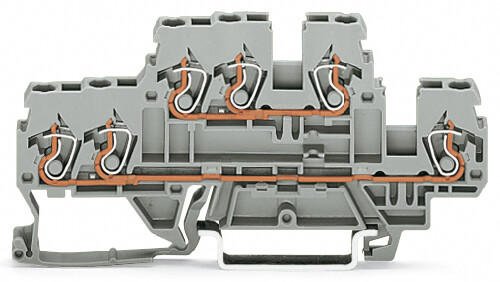 3-проводные двухуровневые клеммы Wago 870-531, проходные клеммы; L/L; для DIN-рейки 35 x 15 и 35 x 7,5; 2,5 мм²; CAGE CLAMP®; 2,50 mm²; серые.