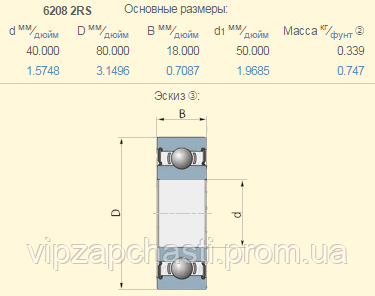 Подшипник шариковый 301164 аналог 6208-2RS 238504, 235918, 952004, 84312857, DR8140