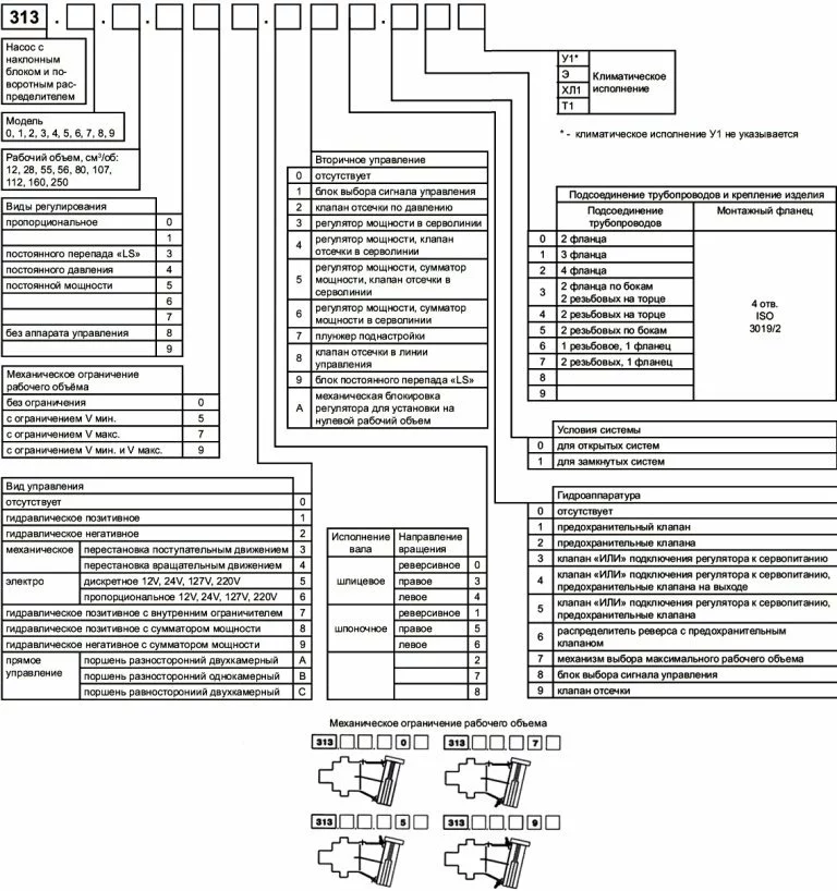 Гидронасос регулируемый 313.3.160 преобразуют механическую энергию вращения вала в гидравлическую энергию потока рабочей жидкости.