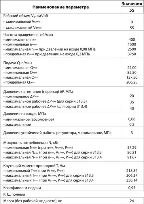 Технические характеристики гидронасоса 313.3.56 :