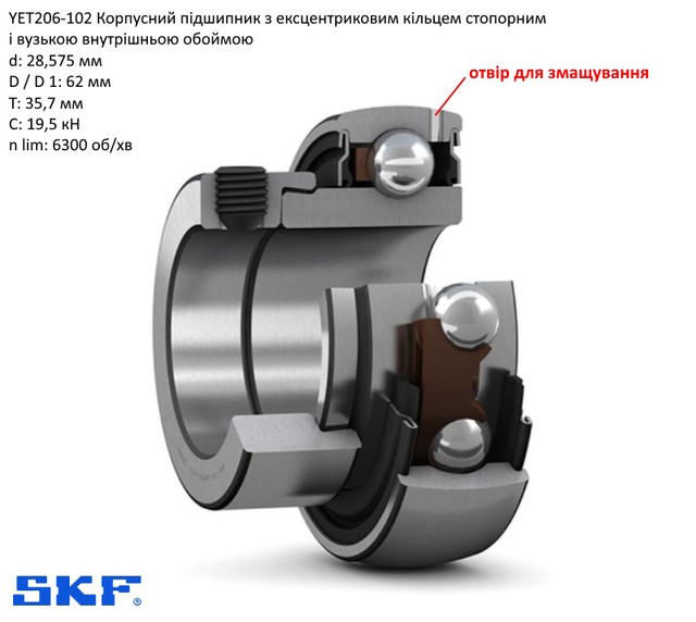 455960R92 подшипник RA102RRB Case YET206-102 SKF