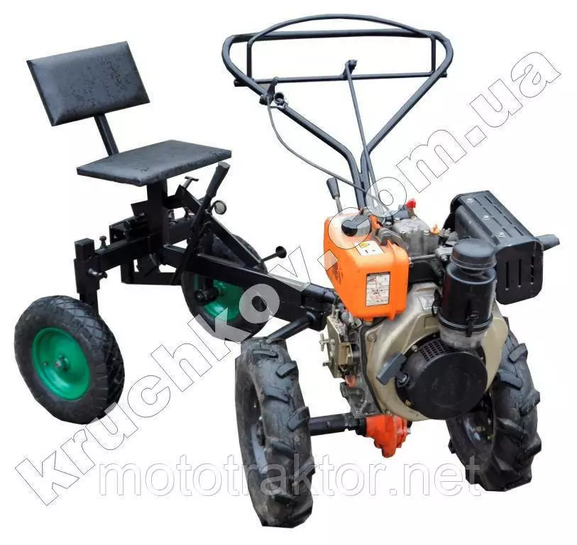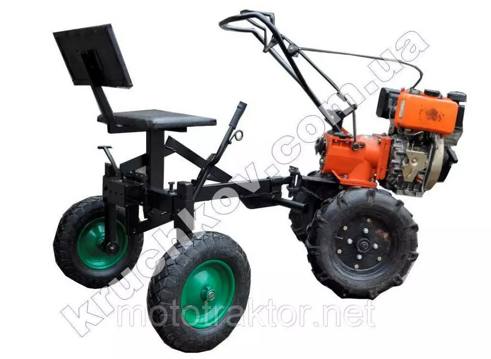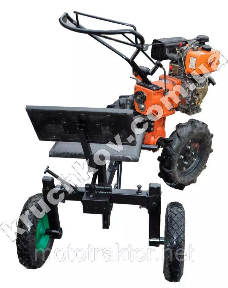 Адаптер агрегатируется с мотоблоками. Удобен и прост в эксплуатации. Колеса имеют возможность перемещения по высоте для регулировки дорожного просвета (макс ― 500 мм, мин ― 300 мм) и по ширине, для регулировки колесной базы. Удобная ручка позволяет изменять угол наклона и глубину обработки почвы. При помощи сцепки легко агрегатируется с любым навесным и прицепным оборудованием.