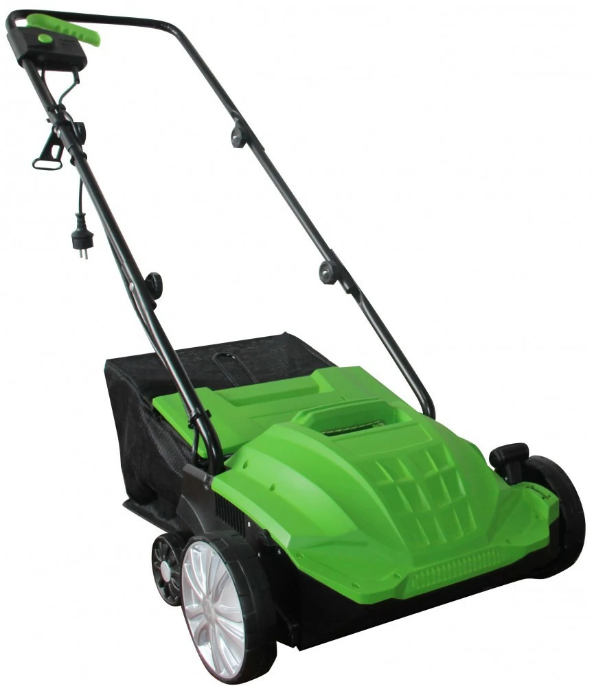 Удобный электрический аэратор для газона с травосборником с сменным скарификатором