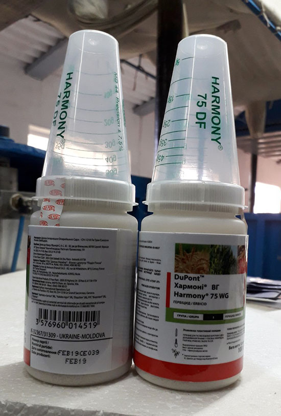 Хармони послевсходовый гербицид для контроля двудольных сорняков в посевах сои, кукурузы, льна и зерновых культур. Хармони осуществляет эффективный контроль однолетних широколиственных сорняков. Полная гибель сорных растений наступает от одной до трёх недель. Отсутствие Резистентности сорняков, высокая селективность к культуре. Гербицид хармони совместим с большинством пестицидов, за исключением фосфорорганических инсектицидов. эффективность использования гербицида хармони падает, если проводить обработку в период засухи, переувлажнения, при низких или высоких температурных показателях. Действующее вещество тифенсульфурон метил 750 г/кг