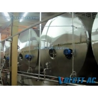 Акратофор - аппарат для шампанизации виноматериалов резервуарным способом. Акратофоры делятся на бродильные и приемные. Последние по устройству аналогичны бродильным, отличаясь от них отсутствием сливной трубы и наличием трех охлаждающих рубашек вместо одной. Бродильные акратофоры являются основным технологическим оборудованием для шампанизации. Акратофор представляет собой горизонтальную (вертикальную) цилиндрической формы резервуар со сферическими днищами, изготовленный из импортной нержавеющей стали марки AISI 304 емкостью 5—50 м3. Акратофор снабжен охлаждающими рубашками, манометром, термометрами, арматурой, обеспечивающей нормальную работу аппарата. Наружную поверхность акратофора и трубопроводы холодного рассола покрывают теплоизоляцией. При непрерывном способе резервуарную смесь непрерывно подают в акратофор снизу; поднимаясь вверх и переливаясь через сливную трубу, она поступает в нижнюю часть следующего резервуара и т.д. Продолжительность процесса брожения 18—25 суток. На протяжении всего процесса шампанизации рабочее давление в акратофоре поддерживается около 0,6 МПа, а температура бродильной смеси регулируется подачей хладоагента в охлаждающую рубашку.