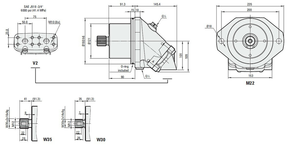 Объем жидкости, вытесняемый мотором за 1 оборот вала, колеблется в диапазоне 25-108 см3/об.