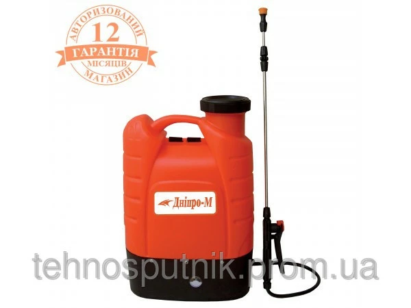 Отличительной особенностью опрыскивателя "Дніпро-М" SPE-18B является то, что распыление осуществляется за счет электрического гелевого аккумулятора 12V / 8 Ач, благодаря этому инструмент практически бесшумный в работе. Аккумулятор создает давление  0.4 - 0.45 Мпа, что позволяет распылять жидкость в горизонтальном положении до 12 м включительно. Объем бака позволяет вместить 14 литров жидкости. Сам же бак выполнен из полипропилена, чтобы  максимально уменьшить вес и увеличить ударостойкость.