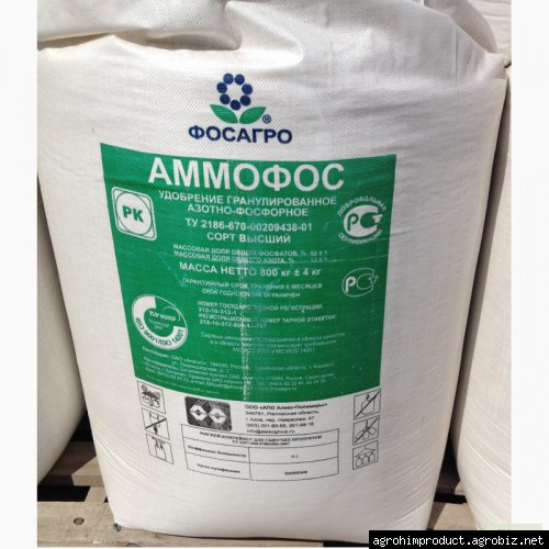 Аммофос (NH4H2PO4) - это высококонцентрированное удобрение, содержащее азот и фосфор в хорошо усвояемой растениями, преимущественно водорастворимой форме. 1 ц аммофоса заменяет не менее 2,5 ц простого суперфосфата и 0,35 ц аммиачной селитры. Удобрение малогигроскопичное, хорошо растворимо в воде, не слеживается и хорошо рассевается. Аммофос используется для улучшения фосфатного режима почв, в критический начальный период роста растений. Фосфор - стратегический элемент питания сельскохозяйственных растений. Особенно необходим он в раннем возрасте яровым культурам, когда их слабая корневая система обладает низкой усваивающей способностью. Применение фосфора в начальный период роста растений способствует развитию здоровой корневой системы, быстрому образованию побегов и листьев, повышению устойчивости к засухе и болезням. Нехватка фосфора в период формирования репродуктивных органов у других культур тормозит развитие и задерживает созревание растений, вызывает снижение урожая и ухудшение качества продукции. Его предпосевное и рядковое внесение являются дополнительными к основному способу применения источниками легкоусвояемых соединений фосфора. Аммофос 12-52 эффективное удобрение для применения под рапс, яровые зерновые, зернобобовые (горох, сою), многолетние травы. Доза внесения аммофоса перед посевом этих культур зависит от степени обеспеченности пахотного слоя почвы подвижным фосфором и обычно составляет 60-90 кг/га д.в. (1,2-1,7 ц/га физ.весе). Кроме того, аммофос, обладая высоким последействием, способствует значительному повышению урожайности последующей культуры озимой пшеницы. Аммофос 12-52 способствует: Увеличению продуктивности культур Развитию сильной корневой системы Повышению устойчивости растений к засухе и болезням Развитию и созреванию растений Улучшению качества продукции Увеличению срока хранения продукции Аммофос 12-52 применяется под следующие культуры: Яровые зерновые (пшеница, рожь, ячмень овес) Зернобобовые (горох, соя) Кукуруза Сахарная свекла Подсолнечник Рапс Аммофос 12-52 широко применяется как основное, предпосевное и особенно как рядковое удобрение под различные сельскохозяйственные культуры во всех почвенно-климатических зонах страны. На нейтральных и слабощелочных почвах (карбонатный чернозем, лугово-лесные карбонатные, каштановые почвы, сероземы) аммофос создает более благоприятный фосфатный режим по сравнению с суперфосфатом. Аммофос целесообразно использовать в засушливых зонах, где азотных удобрений требуется гораздо меньше, чем фосфорных. Он широко применяется также в условиях защищенного грунта совместно с азотными и калийными удобрениями. На основе аммофоса 12-52 готовятся любые марки смешанных комплексных удобрений NPK ( тукосмесей).