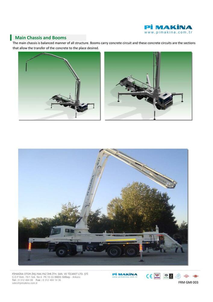 Pi Makina недавно достигла огромных результатов в области бетононасосов и усилила свое имя, установив бетононасосы на грузовиках, которые пользуются большим спросом на рынке. Благодаря научно-исследовательскому подразделению, которое постоянно совершенствует технологии и инфраструктуру бетононасосов, оно постоянно пересматривает свою продукцию и, таким образом, делает свое имя известным на внутреннем и международном рынке.