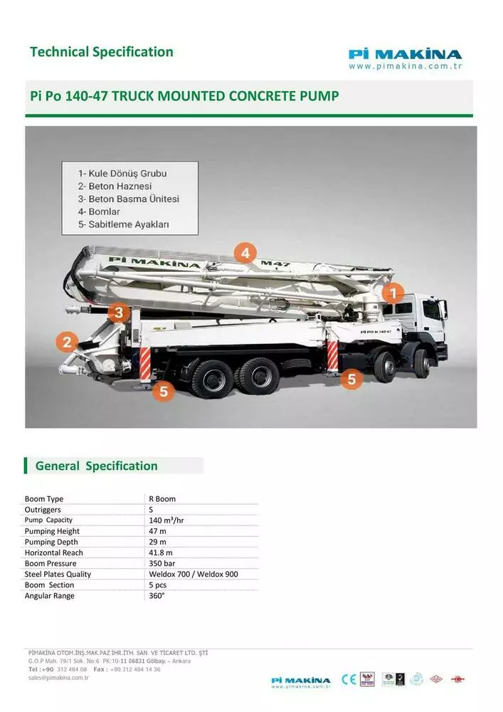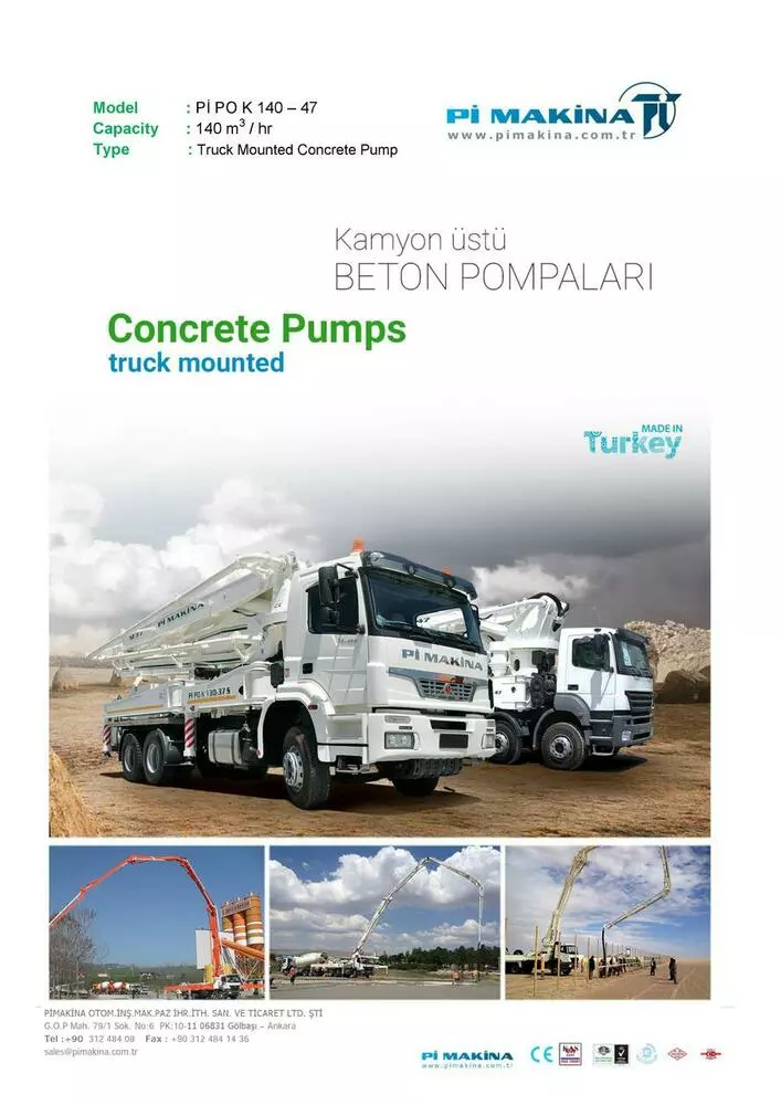 Pi Makina недавно достигла огромных результатов в области бетононасосов и усилила свое имя, установив бетононасосы на грузовиках, которые пользуются большим спросом на рынке. Благодаря научно-исследовательскому подразделению, которое постоянно совершенствует технологии и инфраструктуру бетононасосов, оно постоянно пересматривает свою продукцию и, таким образом, делает свое имя известным на внутреннем и международном рынке.
