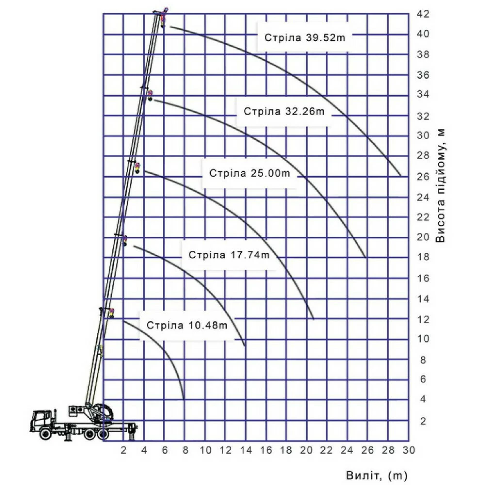 | Длина стрелы крана, м |
