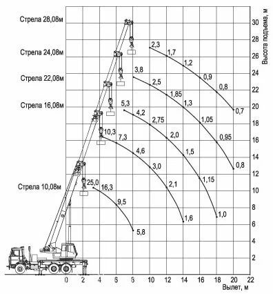 Длина стрелы, м 10,08-28,08