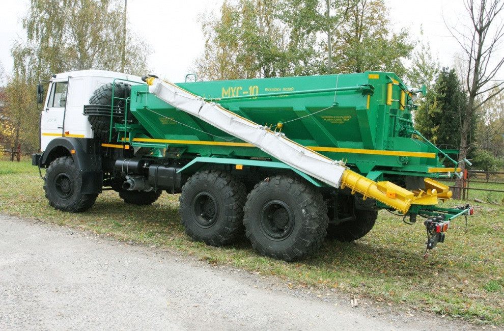 Автомобиль с платформой для внесения известковых материалов и минеральных удобрений на базе самоходного шасси МАЗ 631 705-264 со съемным кузовом предназначена для транспортирования и поверхностного внесения пылевидных химических мелиорантов. Может также использоваться для внесения основных доз твердых минеральных удобрений. Самоходное шасси обеспечивает повышенную мобильность в использовании.