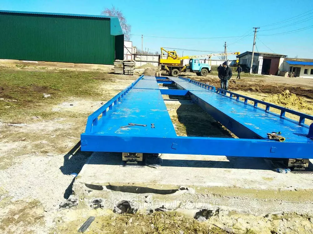 Комплект поставки и выполняемых работ: строительное задание на изготовление фундамента (включая выезд инженера-строителя), грузоприемная платформа, тензодатчики, узлы встройки, коробка соединительная, кабель тензометрический, шины заземления, весоизмерительный прибор с аккумулятором и термопринтером, доставка оборудования, установка весов и программного обеспечения, сдача весов органам Госстандарта