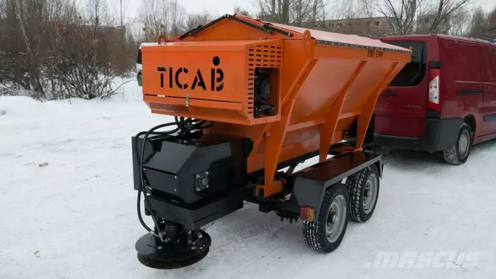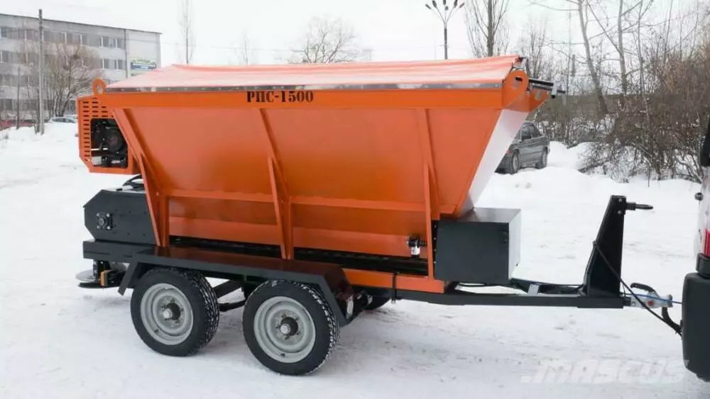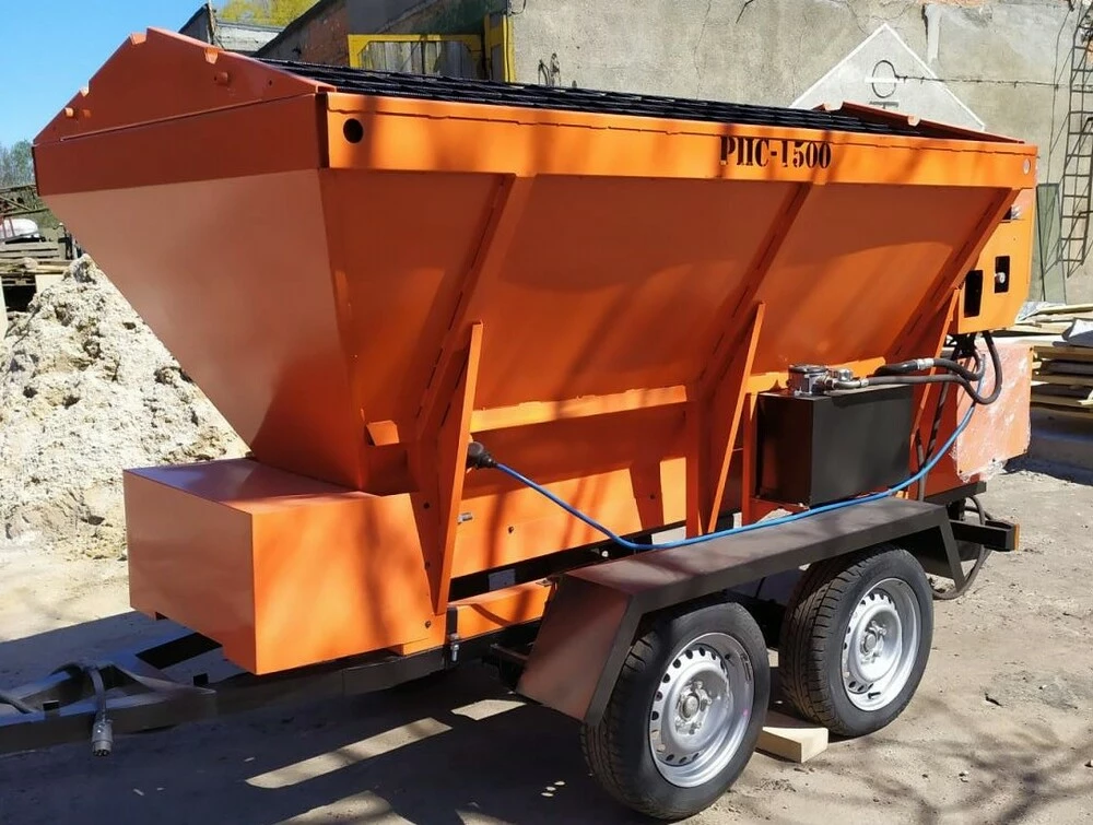 Автономный разбрасыватель песчано-солевой смеси РПС-1500 от ТМ ТІСАВ - мощное оборудование для качественного посыпания дорог и тротуаров противогололёдными материалами, которое позволяет свести к минимуму применение ручного труда и в разы уменьшить аварийность и опасность травмирования людей. Разбрасыватель оборудован бункером объемом 1,5 м³ со скребково-цепочным механизмом подачи и диском для разбрасывания материалов. Благодаря автономности и компактным размерам может использоваться с любым транспортным средством.