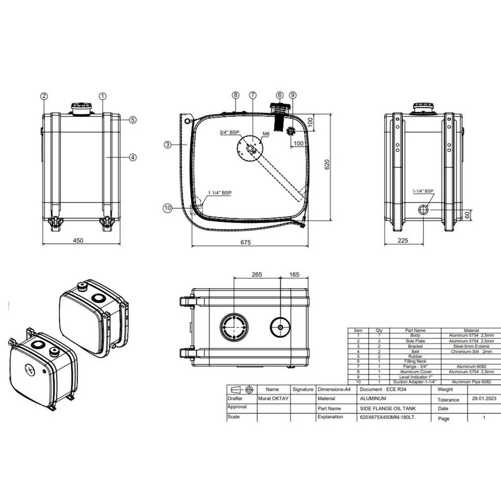 Компания Duzce Saglam Depo создает оригинальные алюминиевые гидравлические баки всех видов. Помимо обычных размеров, у них имеется специальная линейка продукции. Используемый алюминий высокого качества в соответствии со стандартами BS EN 10204/3.1 - это сплав 5754, закаленный до состояния H111.