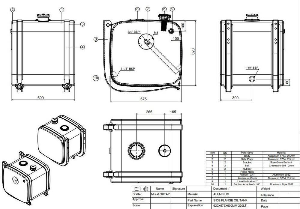 Компания Duzce Saglam Depo создает оригинальные алюминиевые гидравлические баки всех видов. Помимо обычных размеров, у них имеется специальная линейка продукции. Используемый алюминий высокого качества в соответствии со стандартами BS EN 10204/3.1 - это сплав 5754, закаленный до состояния H111.