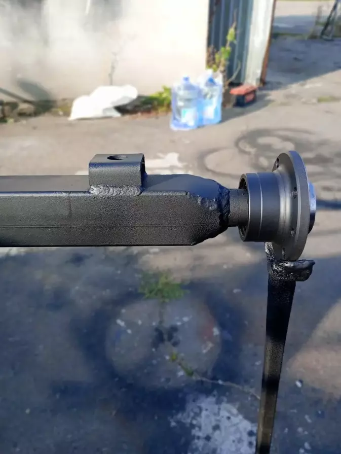 Все сварные швы выполнены с высокой точностью, что гарантирует прочность и герметичность конструкции. Поверхность балки дополнительно обработана антикоррозионным покрытием, защищающим металл от влаги, соли и механических повреждений. Это позволяет эксплуатировать прицеп в любое время года, даже в сложных погодных условиях.