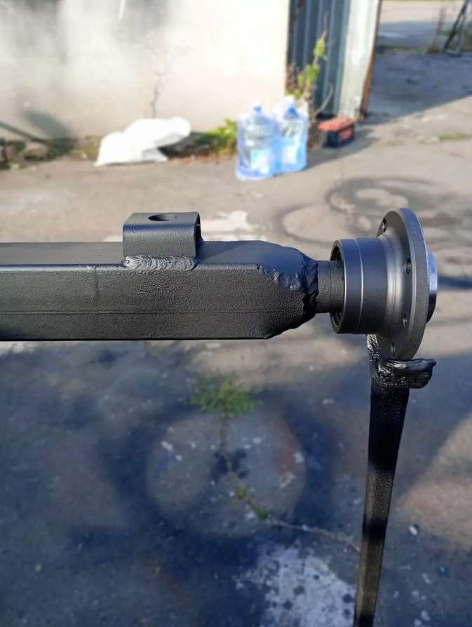 Основой балки есть квадратная труба 60х60 мм с толщиной стенки 6 мм. Такой профиль обеспечивает высокую жесткость конструкции и равномерное распределение погрузки, что особенно важно при перевозке сыпучих, тяжелых или объемных грузов. Расстояние между посадочными местами колеса составляет 152 см, что позволяет использовать изделие в стандартных прицепах бытового и хозяйственного назначения.