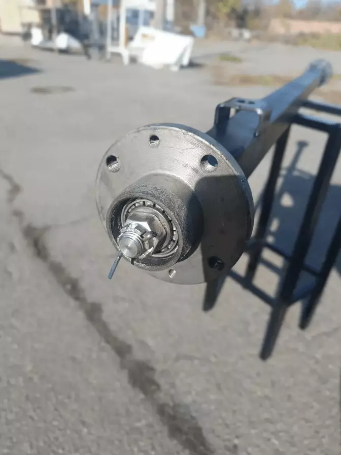 Для дополнительной надежности балка оборудована корончатой ​​гайкой со шплинтом, что предотвращает самопроизвольное раскрутку во время движения, а также металлическими колпачками, защищающими подшипники от пыли, грязи и влаги. Эти детали значительно продлевают срок службы узлов и обеспечивают безопасную эксплуатацию.
