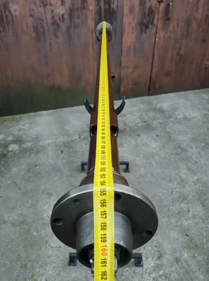 Расстояние между посадочными местами колес составляет 155 см, что делает балку совместимой с большим количеством прицепов бытового и сельскохозяйственного назначения. Расстояние по центрам креплений под рессору – 117 см, что соответствует стандартным параметрам большинства рессорных систем и упрощает установку без необходимости в дополнительных переработках.