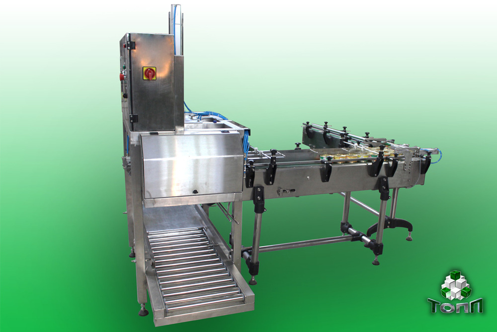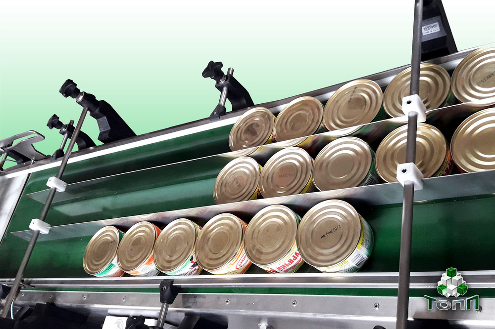 Накопительный  транспортер оснащен узлом счета и отсекания банок.