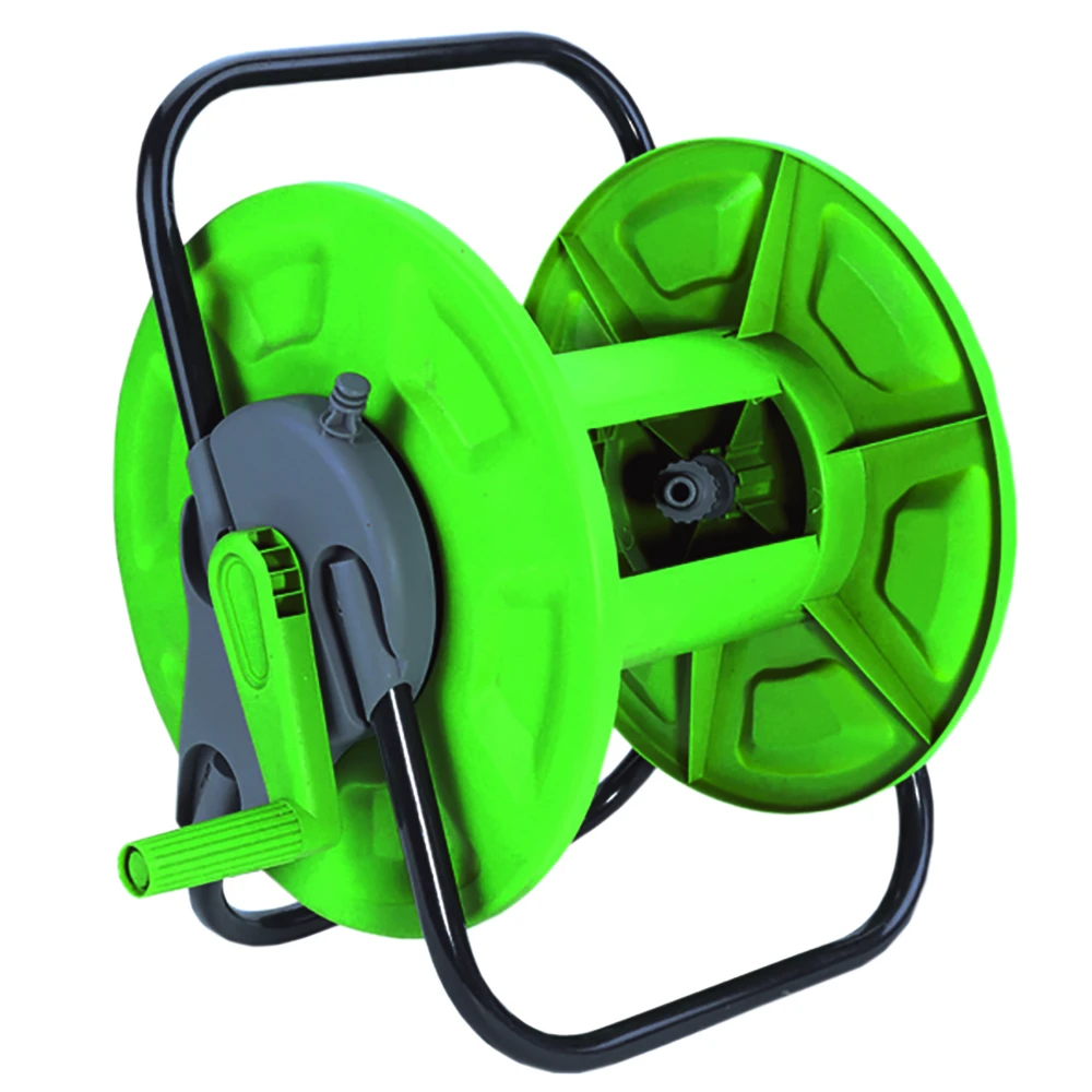 використовується для транспортування шланга до місця поливу і його зберігання між поливами. В залежності від моделі вміщує до 40 або до 60 метрів шланга діаметром 3/4" або 1/2". Барабан виготовлений з високоякісного пластику стійкого до механічних пошкоджень, впливу ультрафіолетового випромінювання і перепадів температури. Оснащений спеціальною котушкою, за допомогою якої відбувається накручування шланга. Вона сконструйована так, що шланг при намотуванні не перекручується і не заплутується. Має металеві ніжки для стійкості. Стаціонарний барабан зручний у використанні на невеликих садових ділянках. Завдяки своєму компактному розміру, дозволяє економити місце при зберіганні садового шланга.