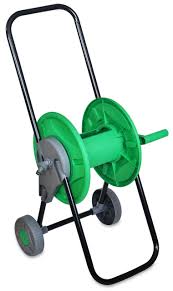 Барабан для шланга Verano 72-776 из прочного пластика со стальными ручками и трансортными колесами.