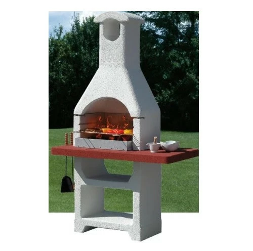 Барбекю с цветной столешницей из высококачественных огнеупорных материалов, в комплекте с хромированной гриль-решеткой, регулируемое в двух уровнях. Разработанный с размещением для вертела SUNDAY®. Можно использовать с углем!