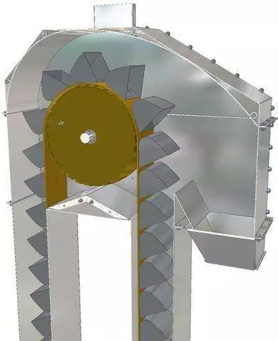 Башмак – это нижняя часть нории, она предназначается для загрузки и выгрузки зерновых масс. В него через окошки засыпается зерно.