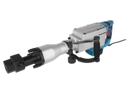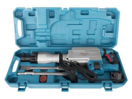 Скорость ударов, при силе удара 45 Дж, составляет 1300 в минуту. В комплект бетонолома Энергомаш ПЕ-25190П входит пика и долото размером 30 х 410 мм. К тому же в придачу к нему идет вместительный и удобный для транспортировки инструмента кейс. Для более комфортной работы в бетоноломе продумана амортизационная рукоятка и боковая рукоятка, позволяющая работать в горизонтальном положении обеими руками. Ежедневная производительность составляет 11 тонн выемки.