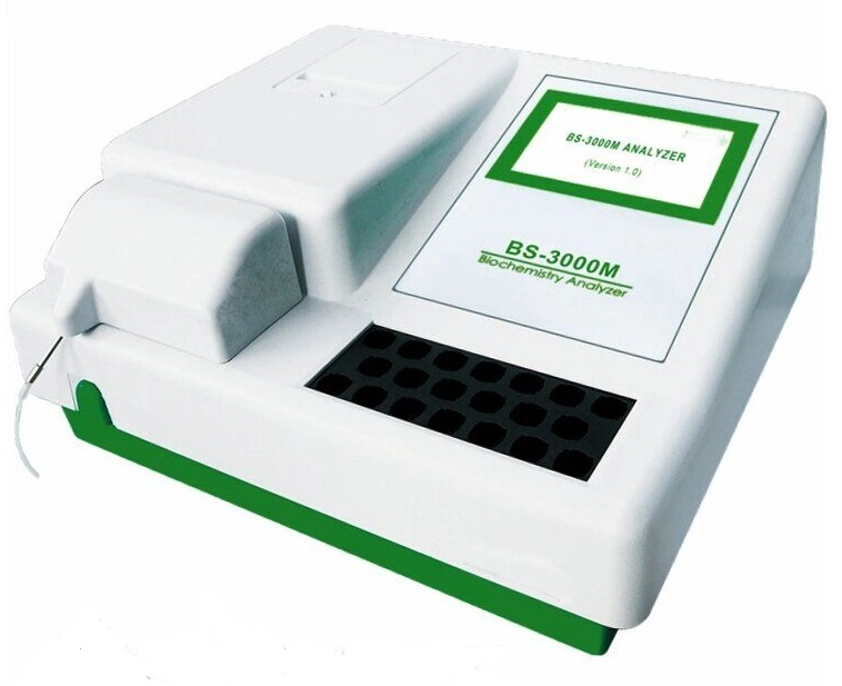 Полуавтоматический биохимический анализатор BS-3000M со стартовым комплектом реагентов (АЛаТ, АСаТ, глюкоза, креатинин, мочевина, холестерин, калибр., контр. N/P; 7 светофильтров, 200 программ, встроенный принтер, прямое считывание, проточная кювета и инкубатор).