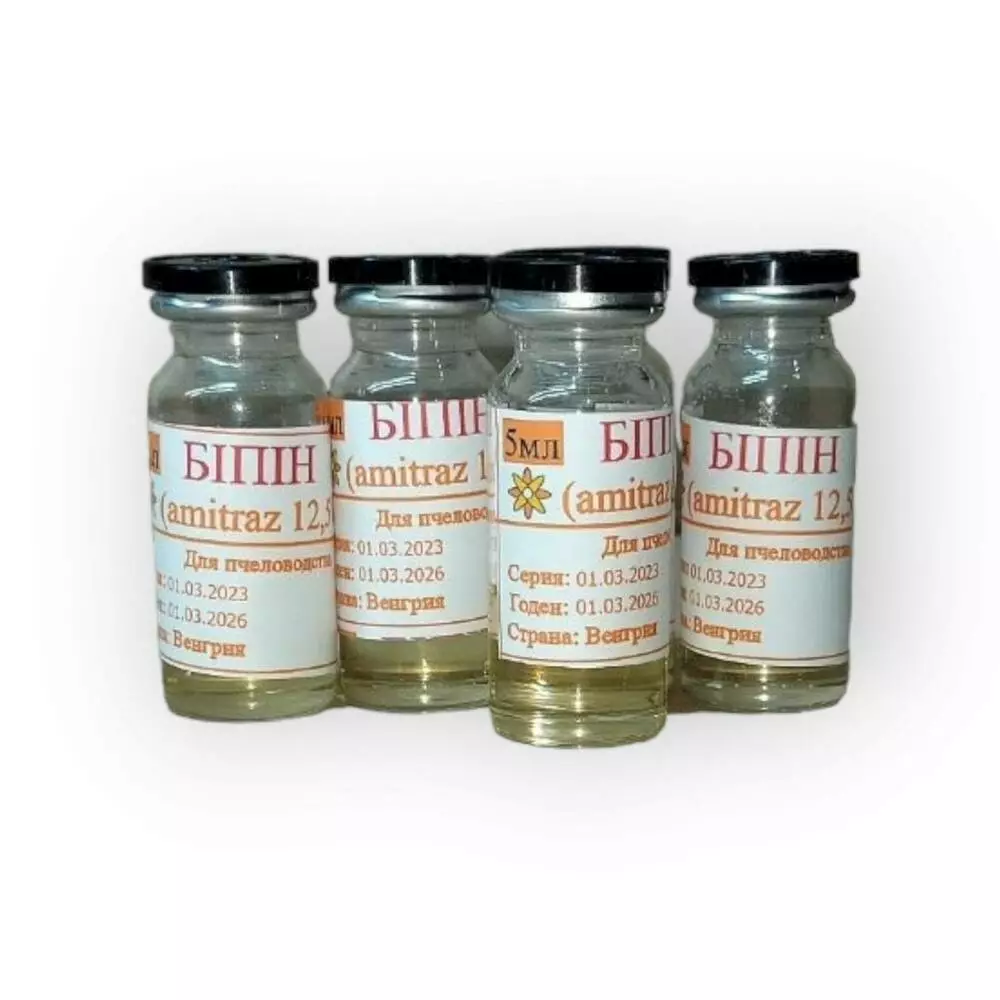 Бипин обладает системным и контактным акарицидным действием против клещей Varroa. Бипин относится к соединениям с умеренной токсичностью для теплокровных животных (III класс опасности). Препарат не оказывает отрицательного действия на жизнедеятельность пчелосемей. ЛД50 препарата для пчел составляет 10,0 мкг/пчелу, в рекомендуемых концентрациях не оказывает отрицательного действия на общее состояние, развитие и продуктивность семей пчел.