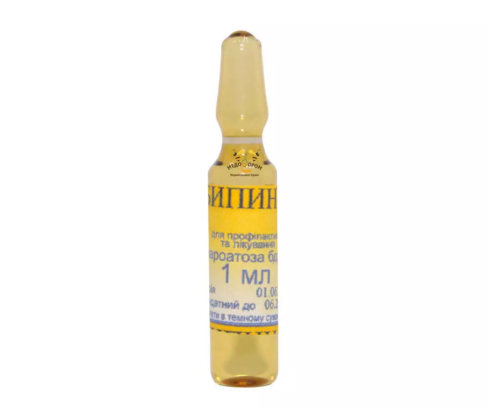 Бипин-Т 1 мл – действующее вещество тимол и амитраз. Данный лекарственный препарат выпускается в стеклянных флаконах 1 мл, 20 доз.