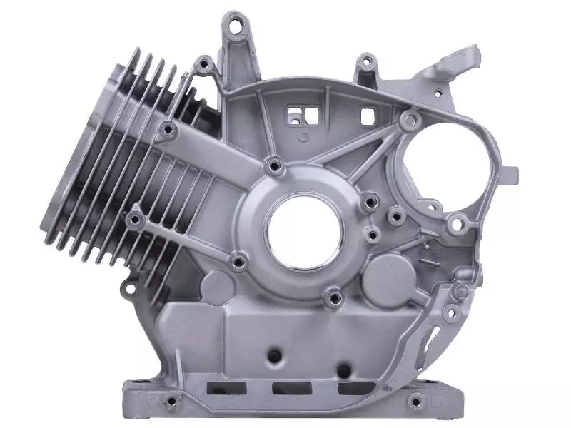 Деталь содержит блок цилиндров, в поршневое отверстие которого запрессована стальная гильза, повышающая надежность и долговечность двигателя. Отличительной особенностью наружной поверхности является разветвленная система ребер охлаждения, эффективно рассеивающая излишнее тепло, сгенерированное в процессе работы устройства.