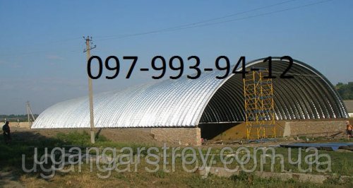 Ангары бескаркасные, арочные, быстровозводимые - 1000кв.м. за 10 дней! В любой точке Украины - мобильный комплекс. Металл - оцинкованная сталь 0,7-1,25мм. С плотностью цинка - 130-280гр./м.кв. Диаметр конструкции - 12-25м. Прочностью - 480кг/м.кв. Область применения - всевозможные объекты промышленного и коммерческого назначения: зерносклады; гаражи; ангары; склады; спорткомплексы; мастерские; корты; крытые манежи, крытые рынки, ..... Стоимостью от 390грн/м.кв.