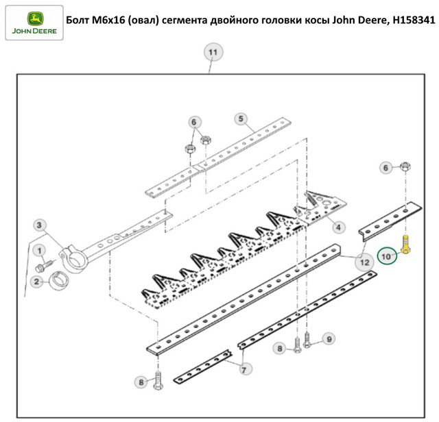 Болт М6х16 (овал) сегмента двойного головки косы John Deere, H158341