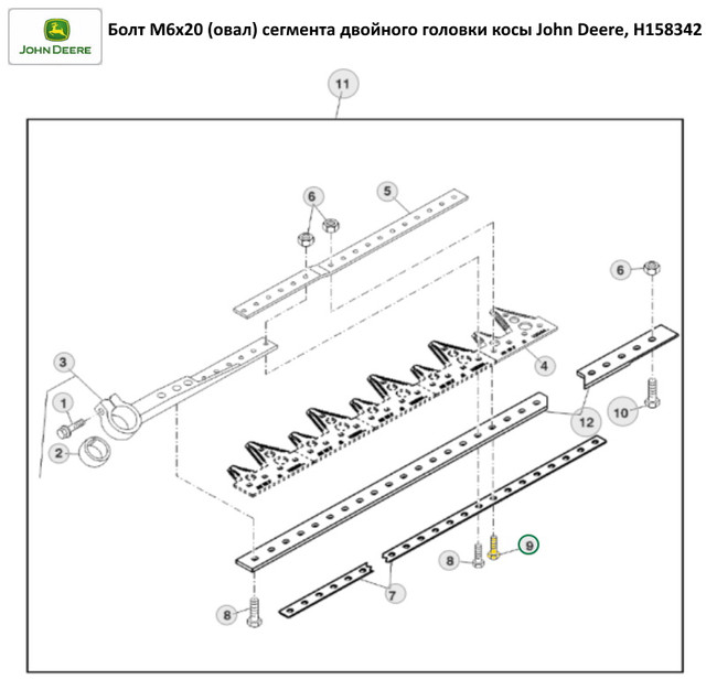 Болт М6х20 (овал) сегмента двойного головки косы John Deere, H158342