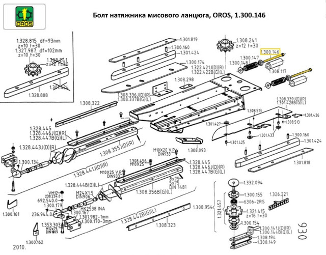 Болт натяжника мисового ланцюга, OROS, 1.300.146