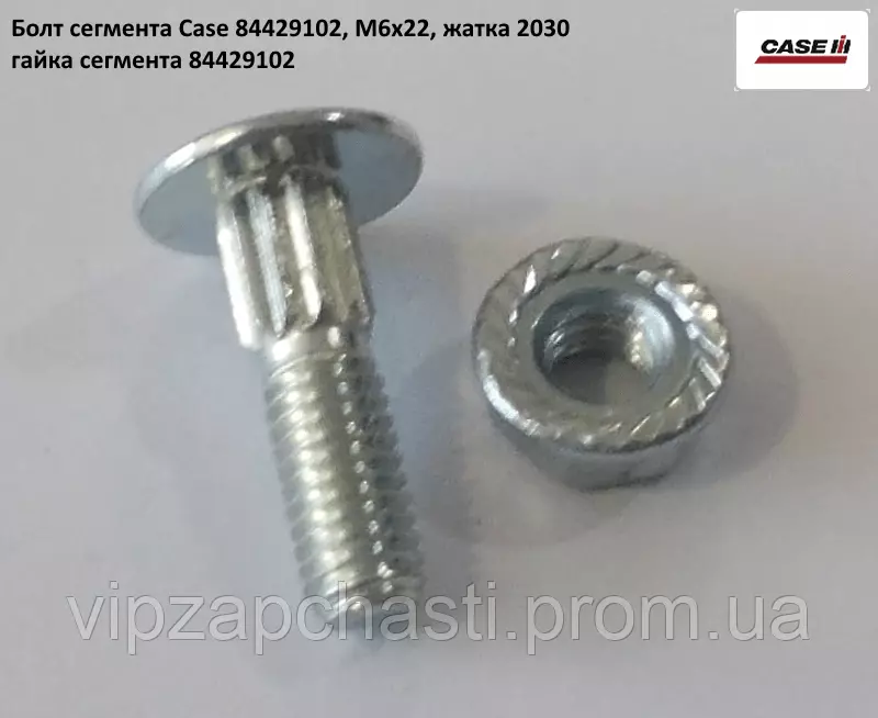 Болт сегмента на пятку косы жатка CASE 2030, 84429102 (М6х22) + гайка 84429102, под сегмент 84429103