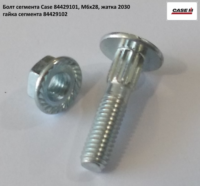 Болт сегмента на пятку косы жатка CASE 2030, 84429101 (М6х28) + гайка 84429102, под сегмент 84429103