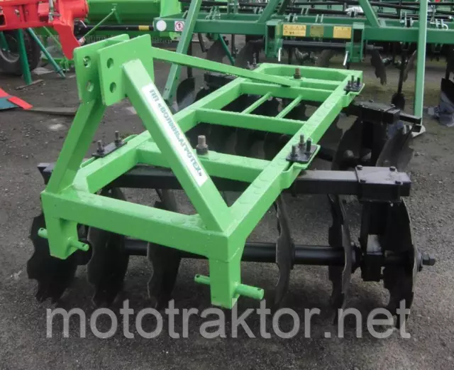 Устанавливается борона дисковая на трехточечный стандартный навесной механизм минитрактора.