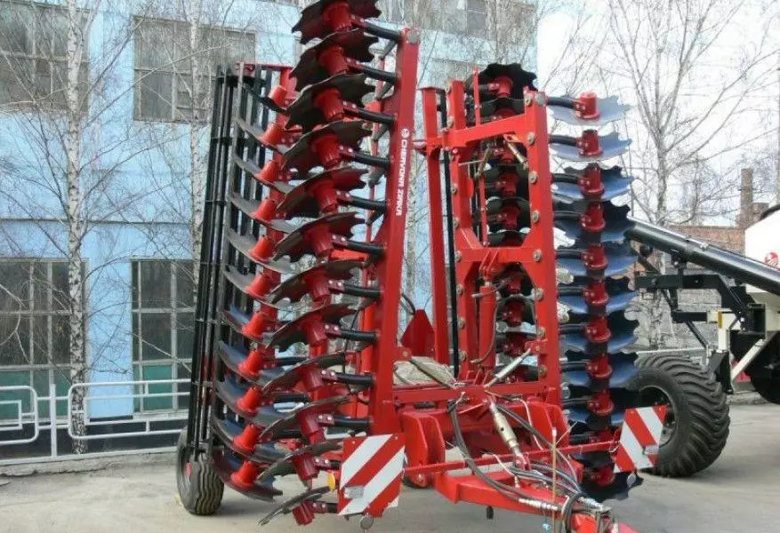 Конструкция агрегата обеспечивает плавную регулировку угла атаки каждого ряда дисков в пределах от 0° до 30°, что позволяет оптимально настроить борону для различных типов почв.