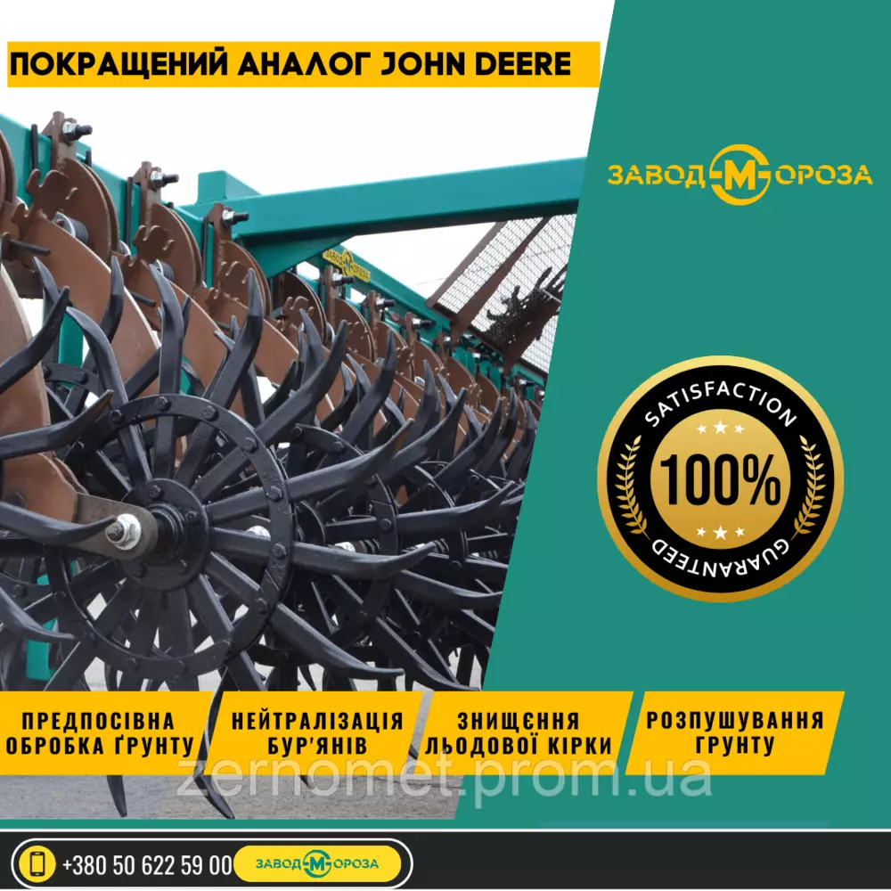 - Знищення бур'янів на стадії ниткоподібних сходів. (ККД до 100% при швидкості руху 15-20 км на годину). Борона має навісний спосіб агрегатування і використовується з тракторами класу 2.
