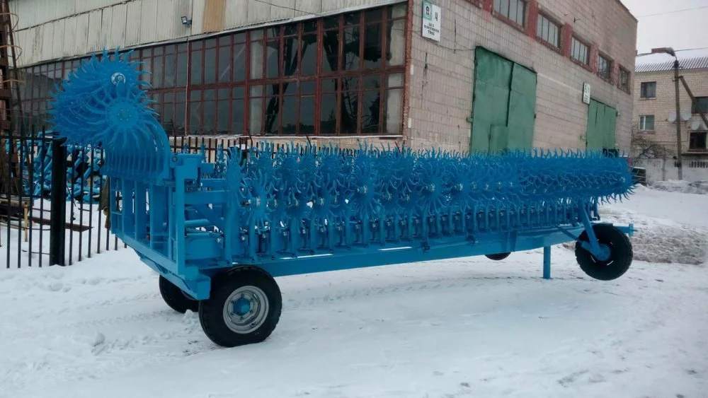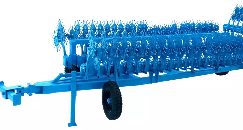 причепний агрегат має 14 метрів робочої ширини захвату, що значно підвищує швидкість обробітку;