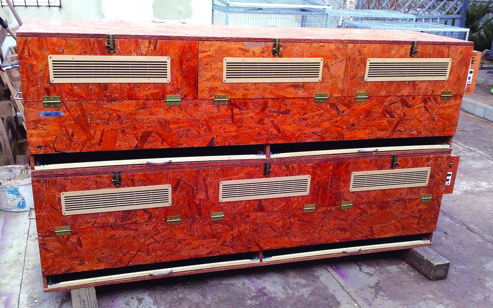 130 перепелят 3х недельного возраста. Каркас изготовлен из ОСБ